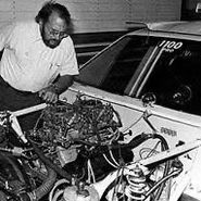 The frame /chassis is built into the lite-weight body. The cars driveline is then installed. The differential/rear end, is a full floating axle, Dana "60" series that has been shortened to fit under the body of a 1974 Vega. The motor that came in the Vega was just a little 4 cylinder aluminum motor. It is replaced with a small block Chevy V-8 engine and the engine will be then be attached to a 4 speed Lenco transmission that will have a short driveshaft that will be hooked to the Dana 60 rear end, then using lite-weight aluminum they build the floor panels that cover the chromoly tubing. This car is then painted and lettered as a tribute to the late Bill "Grumpy" Jenkins.